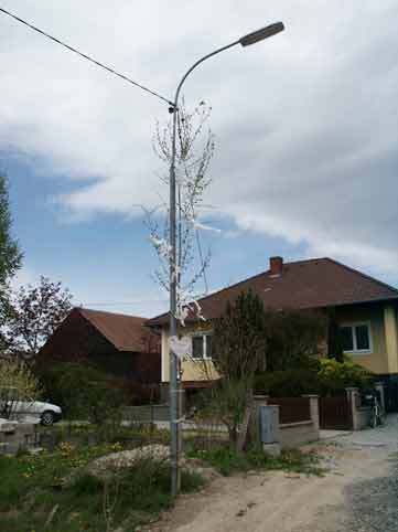 Stromleitungen. An der Ortseinfahrt von Ziersdorf kommend liegen bereits