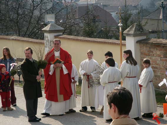 Palmzweige geweiht. Zahlreiche Kinder hatten sich am Kirchenplatz mit