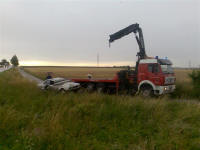 Bergung mit Kleinlöschfahrzeug und Abschleppseil, Kreuzung reinigen. Die FF