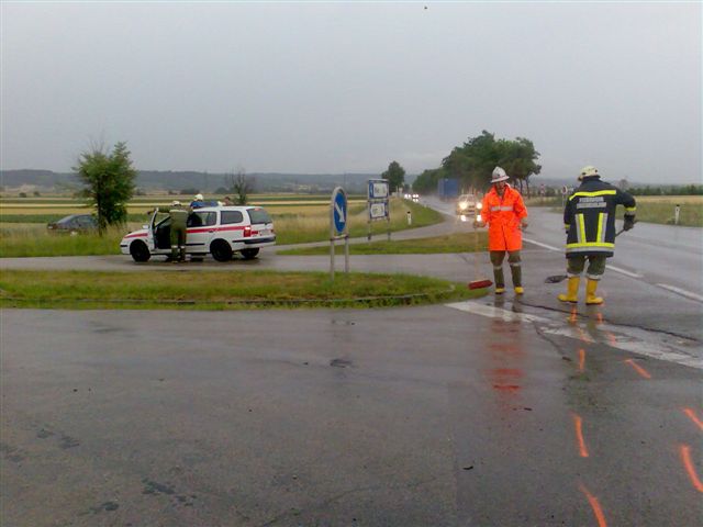 einem Wassereinlauf, Ölaustritt bei einem PKW, keine Verletzten. Tätigkeit