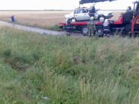 Auto überschlug sich und blieb auf dem angrenzenden Feld auf dem Dach
