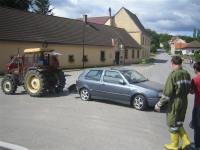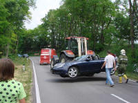 Anhänger und einem Traktor aus. Der beschädigte PKW wurde mit dem Traktor