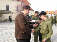 das Ehrenzeichen für 25-jährige Tätigkeit im Feuerwehrwesen. Der Kommandant