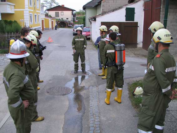 Gruppenkommandant Leopold Zimmermann einen Atemschutztrupp bestimmt. Als wir
