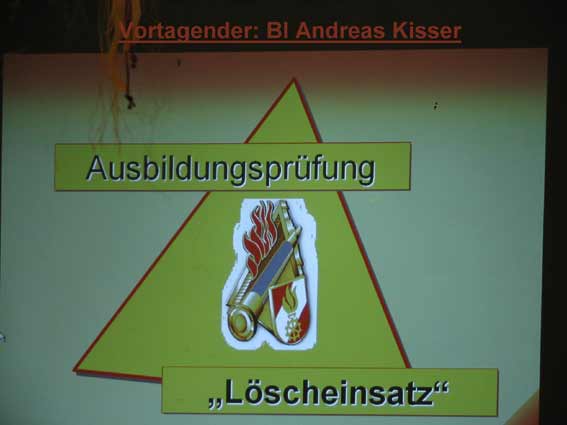 Übung, zur Auffrischung, theoretisch die Brandbekämpfung mittels