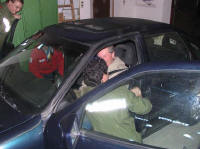 die Beleuchtung aufzubauen und drei Mann rüsteten sich mit Atemschutz aus.