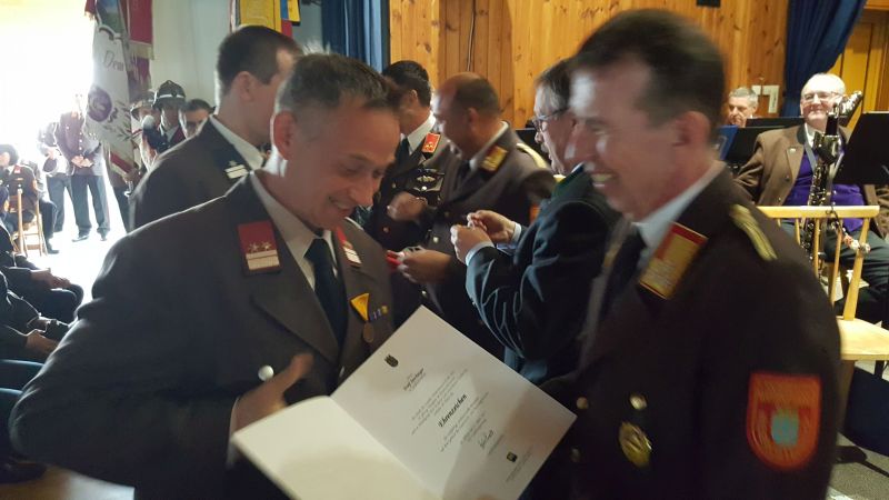 Kommando der FF Großmeiseldorf zu einer Feier ein. Bürgermeister Johann