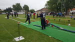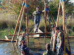 aufgebaut wird. Alle zum Finnentest angetretenen Feuerwehrmitglieder