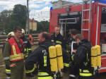 Zahlreiche schwitzende Feuerwehrleute