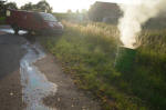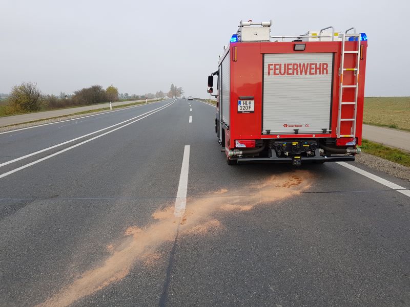 Die FF Großmeiseldorf bindet das Öl mittels Ölbindemittel und reinigt