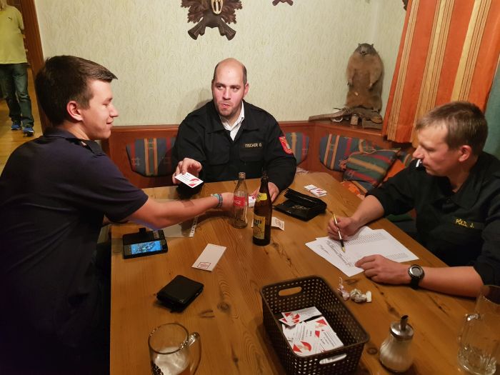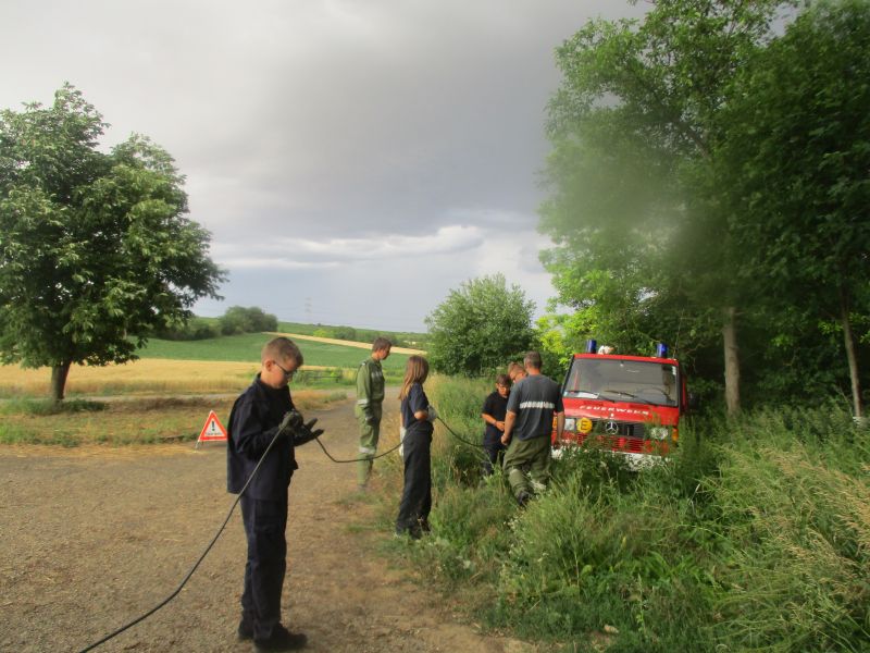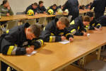 Die Jungfeuerwehrmänner & - frauen wurden zuerst schriftlich geprüft. Danach wurden die Stationen vergeben. Man musste nur eine praktische Station machen.
