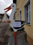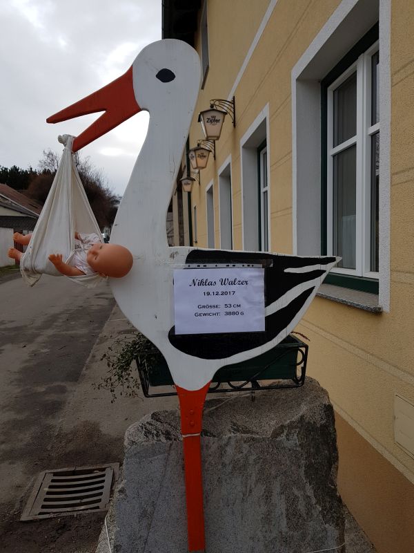 Storch vor dem Florianihof der Familie Walzer aufgestellt. Anschließend