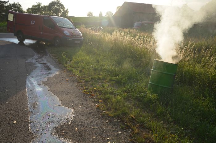 Paffstettnerstraße in Großmeiseldorf mit Motoröl verunreinigt ist.