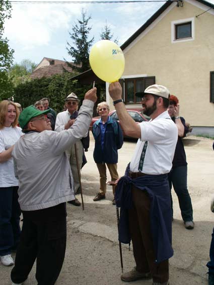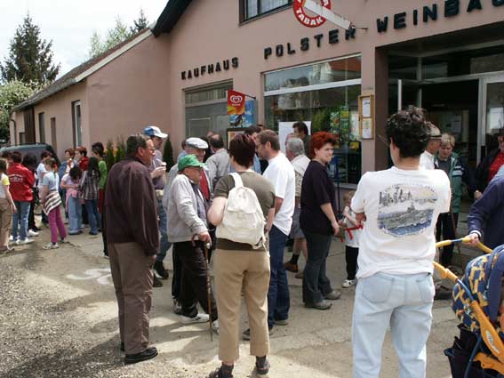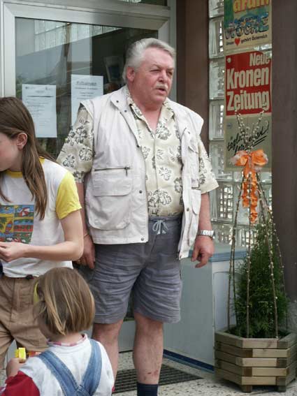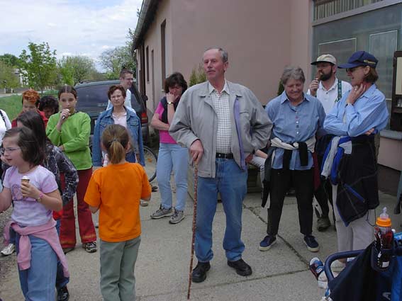 Wenzl begrüßt die Wanderer beim Treffpunkt vor dem Kaufhaus Bauer |