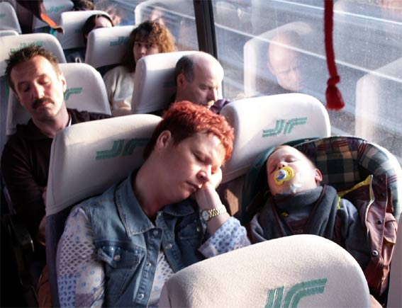 Auf der Heimfahrt sind viele erledigt - Schlafen ist angesagt !