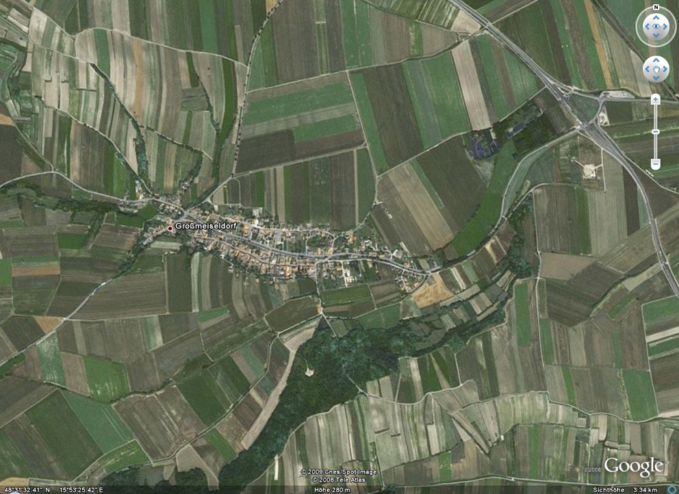 Satellitenbilder von Großmeiseldorf Dezember 2008: Großmeiseldorf aus 3 bzw. 6 km Höhe in verbesserter Qualität gegenüber Aufnahmen von Google earth aus 2006