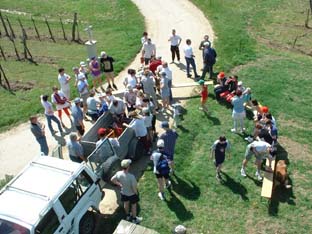 ÖVP Großmeiseldorf beim Maibaumaufstellen am 29.4.2001 vor dem Dorfhaus