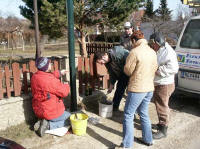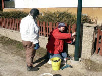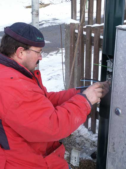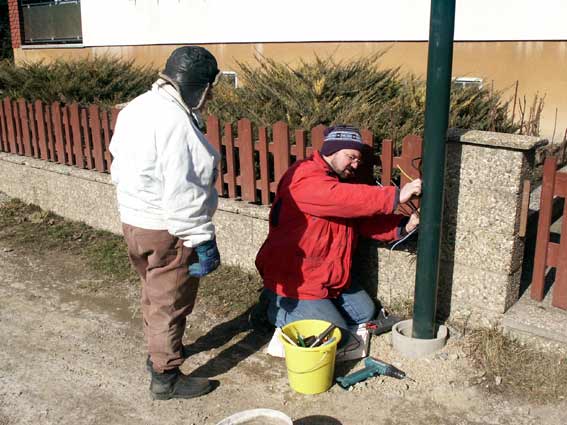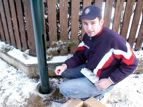 Alfred Heindl schließt die Lampen an |